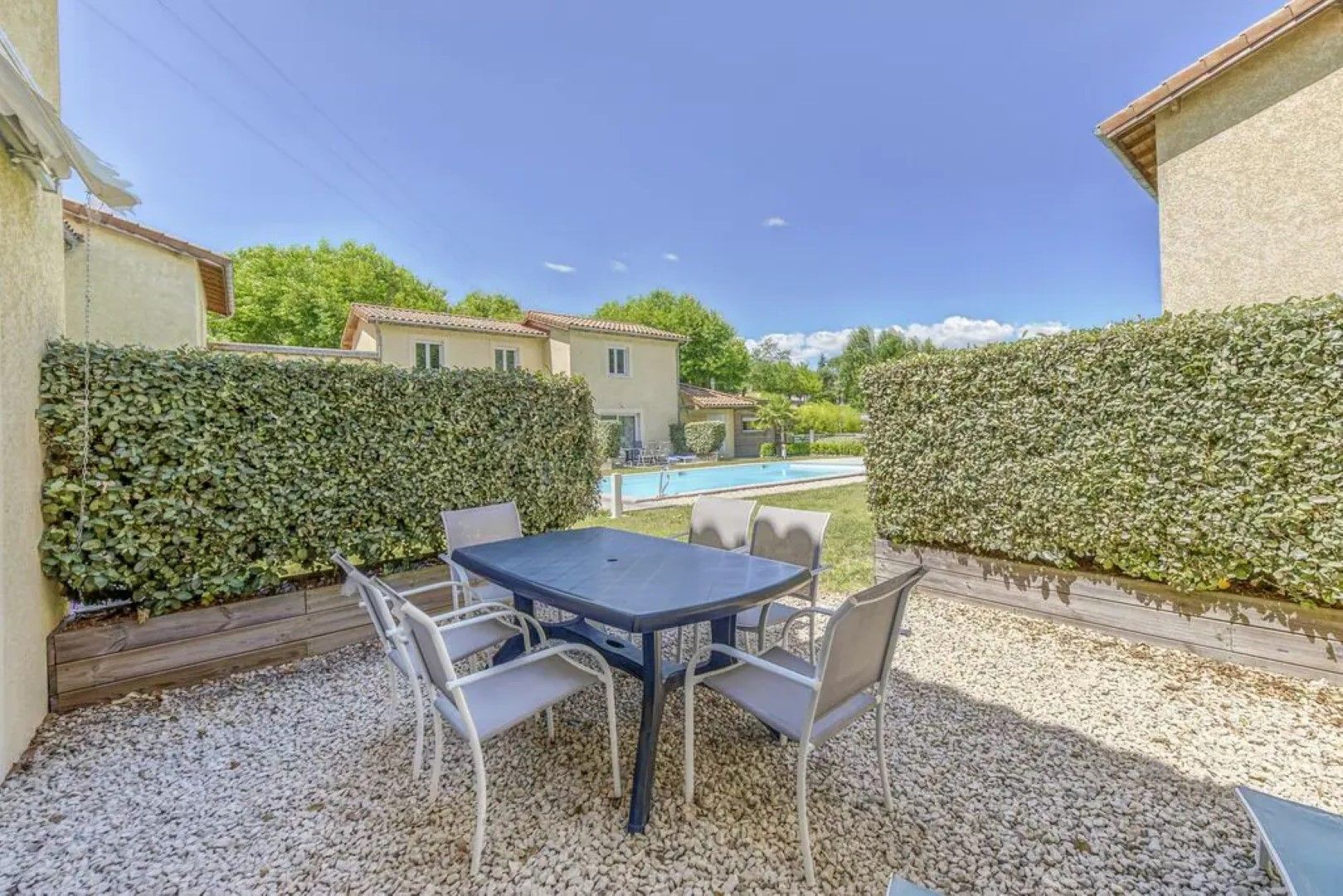 Dit is het huisje 5 met privé terras en publiek zwembad.